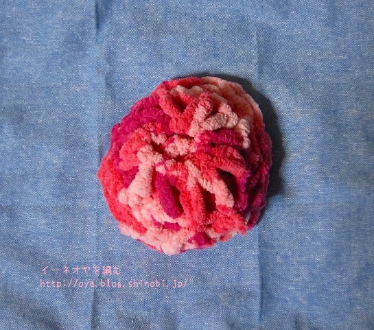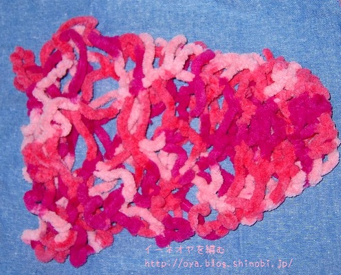 毛糸だと摩擦が強すぎて編めませんが、このモール毛糸だとうまくやればイーネダンテルの編み方でも編めますね。