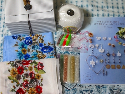 ハンカチサイズの、そのまま使えるし縁にオヤ付けてもいいというスカーフ素材買いました。