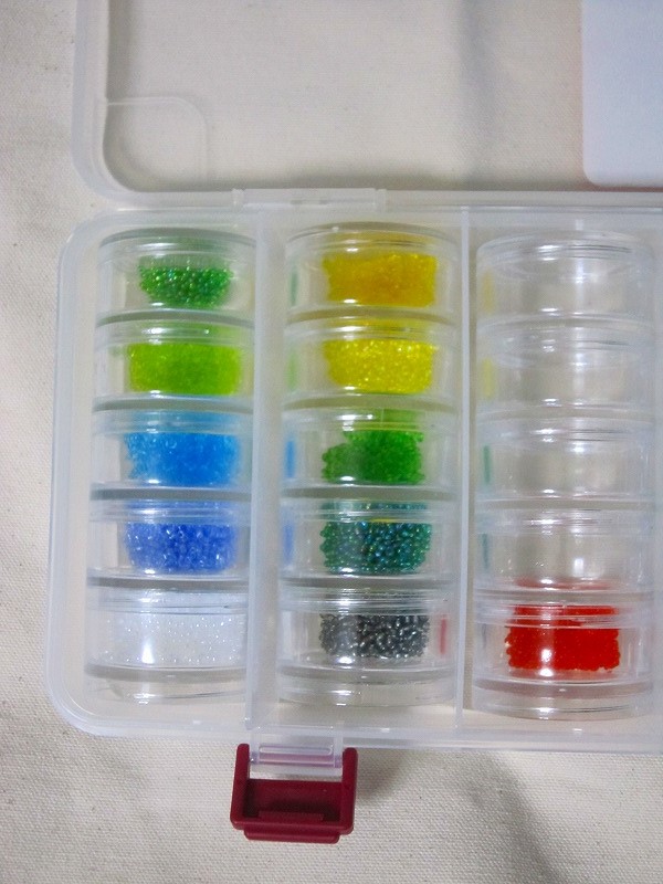 これはこれで使いやすいのですが、ラウンドストッカーというものを購入し、筒の中のビーズをわかりやすく保管しておくことにしました。