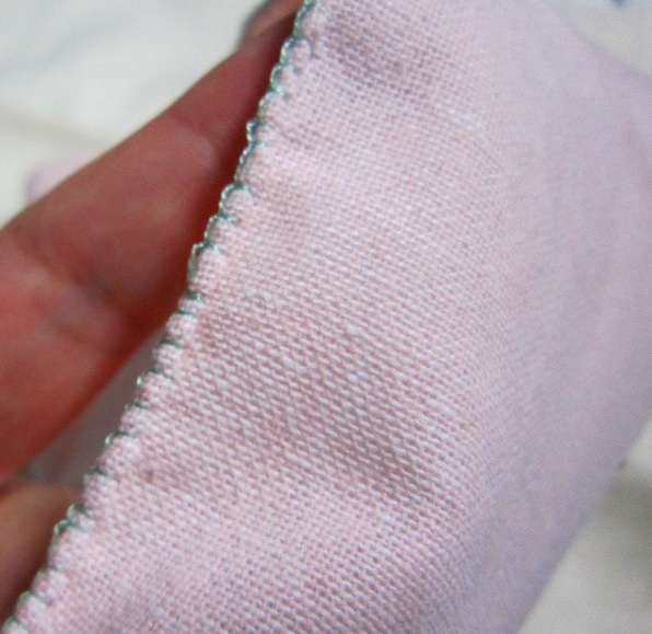 アイロンをかけてみると、端がほつれているので、かがってみようと思い、オヤ関連の本を探したところトルコの伝統レース2 イーネダンテル ~縫い針1本で編むレース~ (茜屋トルコ手工芸シリーズ)の中に、布の縁をかがりながらオヤを編む方法が載っていました。