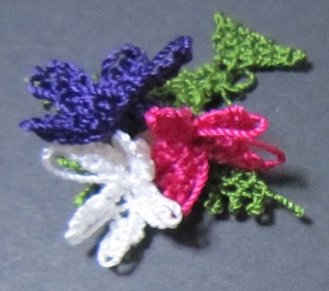 ヒヤシンスのモチーフは、筒状に編む場所が多いので、きれいな筒状に編むのが下手な私としては苦手なところ…。