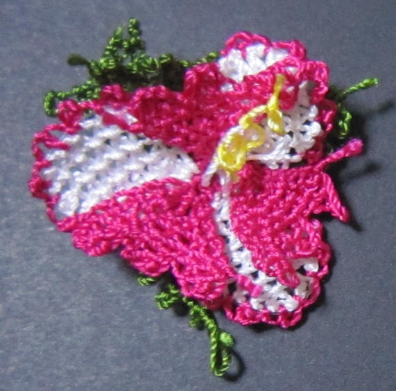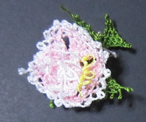 バラといえば真っ赤なバラというのが定番なのでしょうか? 濃いピンク色で編んでしまった@@; なんだかアクの強い感じになってしまいました。 色選びも大事だと思った一作です。 バラ…かなぁ? トゲはもちろんありません(*゜▽゜*)