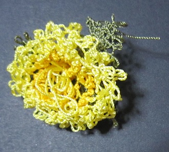 テグスを縁に編みくるんだあと、テグスを切るのは飾り花を編んだ後にしたほうがいいかもしれません。
