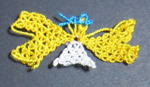 蝶Bは羽根の先がピンとしているかどうかが、きれいに出来る鍵なのではないだろうか? まずは勝負! へろっとしている@@; しかも右の羽根がきちんと編めていない@@; なんとなくやり直し。(´д`lll)