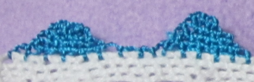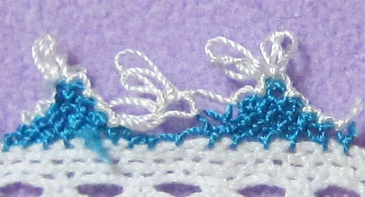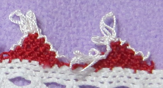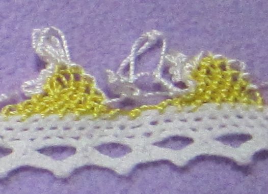 二段目から、渡し糸をすくうんですが、オヤ結びの基本である、渡し糸だけすくって糸を巻きつけていなかったんです。