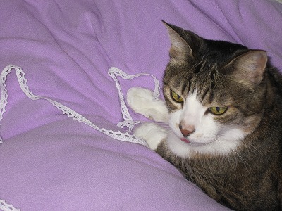 リボン大好き、家の猫です。