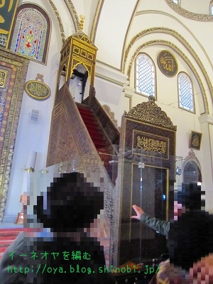 説教壇の一番上は、預言者ムハンマドが立つ場所とされ、イスラムの僧侶は中段で説教するそうだ。