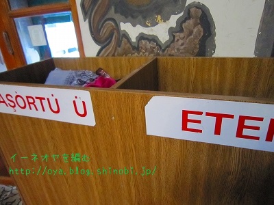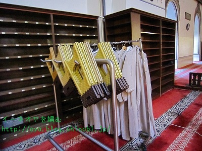 これはスカーフを忘れた女性観光客向けの、貸し出しスカーフだそうだ。