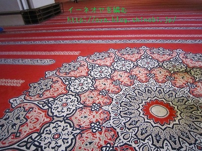 絨毯の長い線に沿って座ると、メッカの方向に向かってお祈りできるという仕組み。