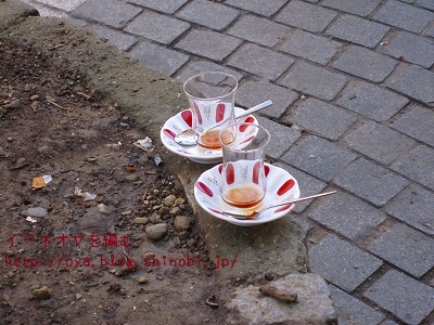 喫茶店の近くでは、飲み終わったチャイのカップが、無造作に置かれている。