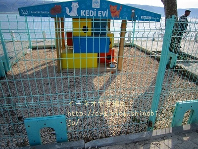 ふと、広場の一隅を見ると、猫の家と書かれた小屋がある。