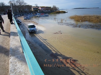 車が水の中を疾走してくる。水陸両用車とかではなく、普通の乗用車だ。