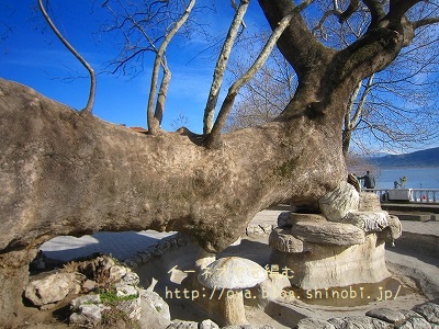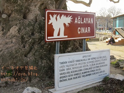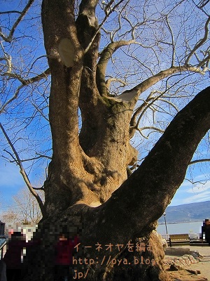 近くにある看板とガイドさんの言葉を合わせると、この木は樹齢750~800年ほどあり、どういうわけか泣くのだという。